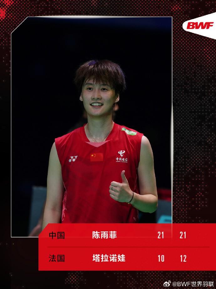 8月25日,2025年羽毛球世锦赛首轮,陈雨菲2-0(21-10、21-12)轻松赢下塔拉诺娃,晋级女单32强,取得首次交手胜利。下一场,她将迎战丹麦选手米娅。